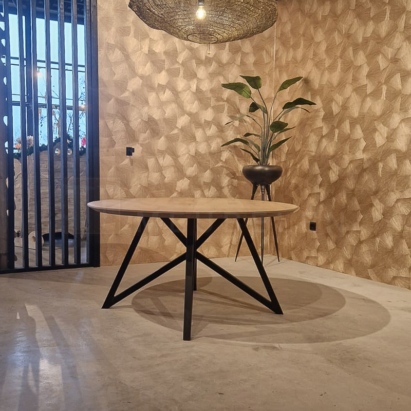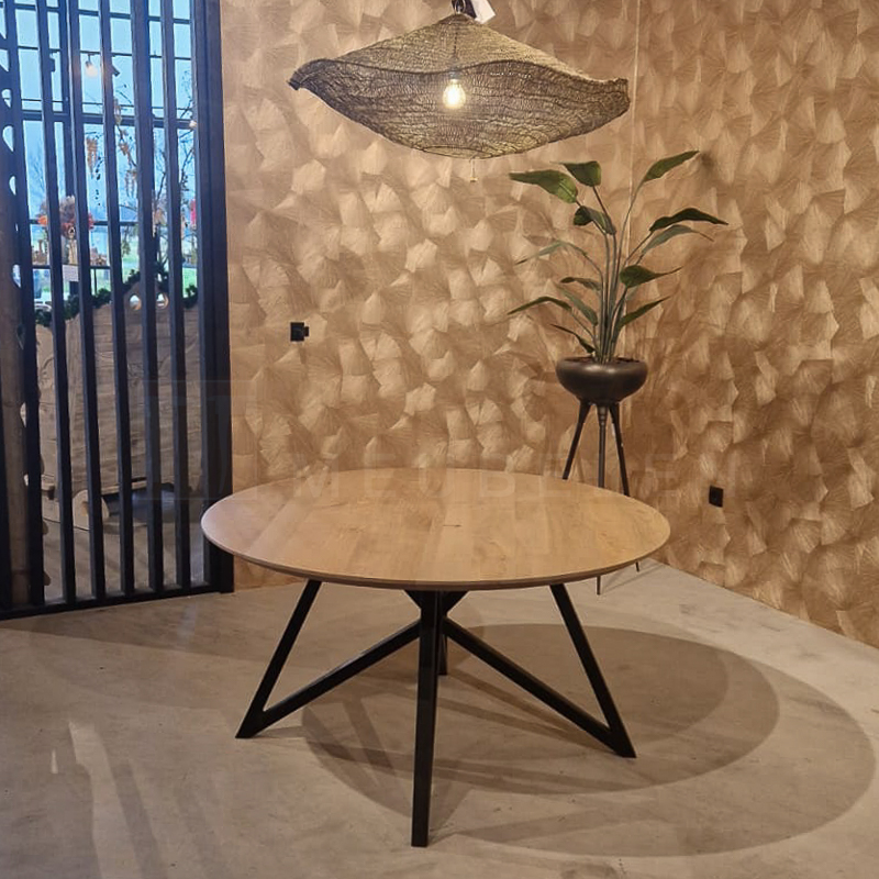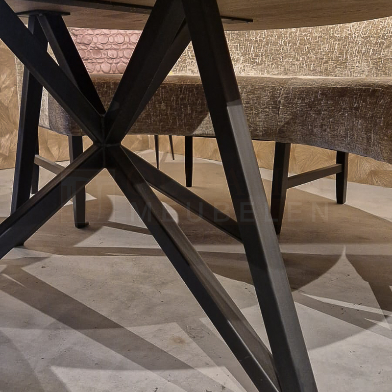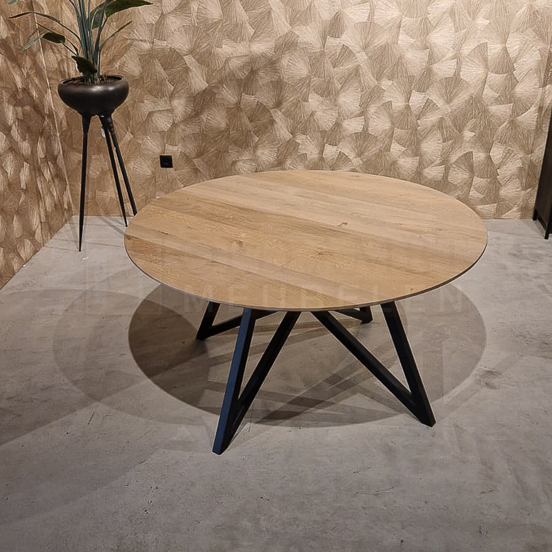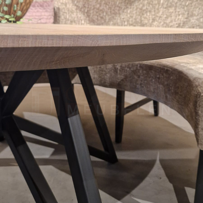 Het ronde blad van de tafel Femm is gemaakt van eikenhout 4 cm met een verjongde en behandeld in een door u gewenste kleur. De tafel op de foto is behandeld met de kleur 3000 transparant en afgelakt met een 2K lak, wat direct een beschermlaag vormt tegen vochtvlekken en kringen. Het onderstel is gemaakt van een metalen 4 x 4 cm koker en kan gespoten worden in Wit (RAL 9010), Grijsbeige (RAL 1019), Parelgoud (RAL1036), Chocoladebruin (RAL 8017), Olijfgroen (RAL 7002), Parelmoergrijs (RAL 1035), Ombergrijs (RAL 7022), Zwart (RAL 9005).