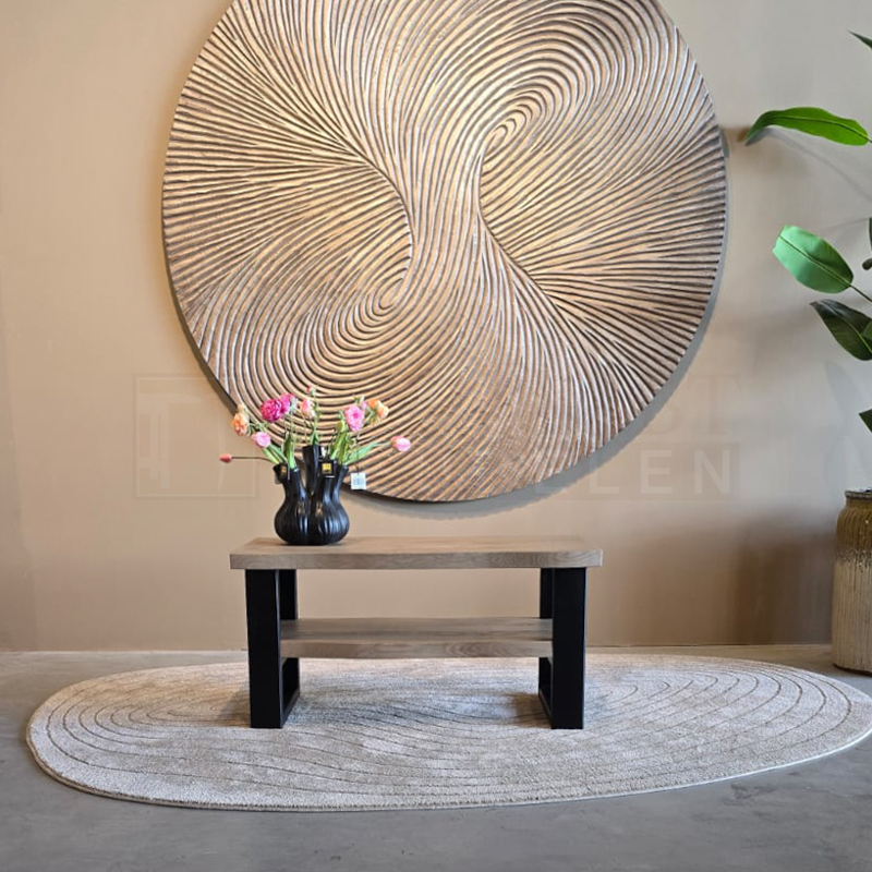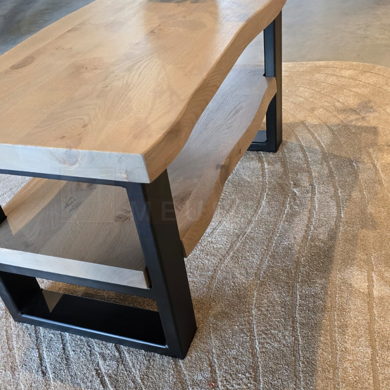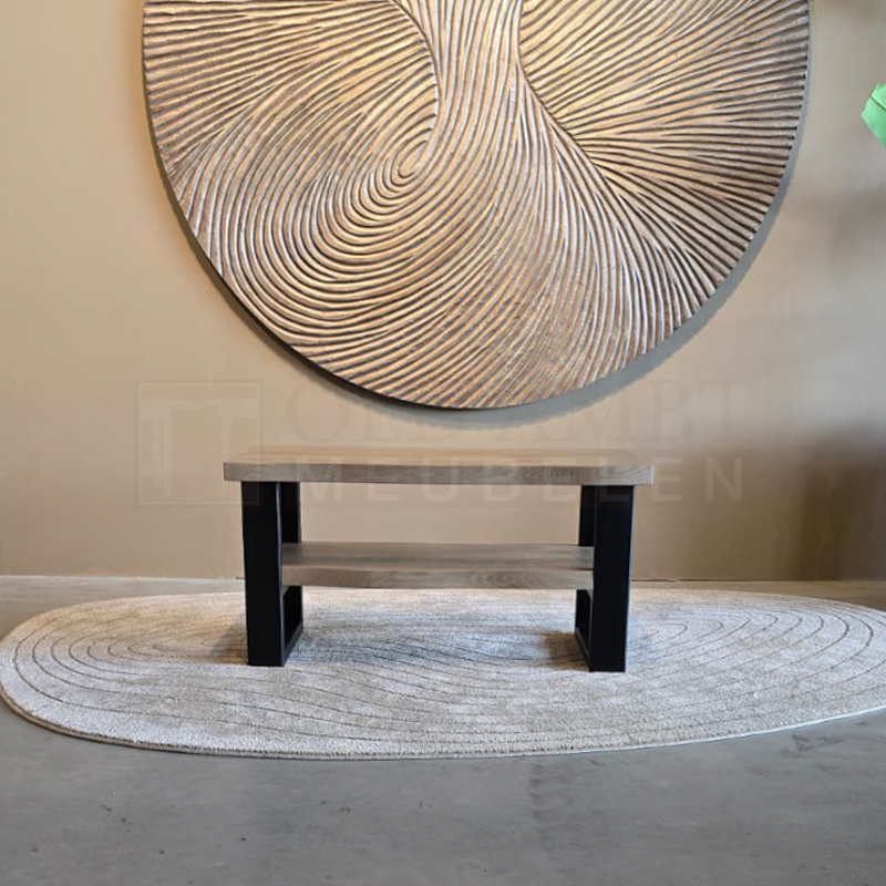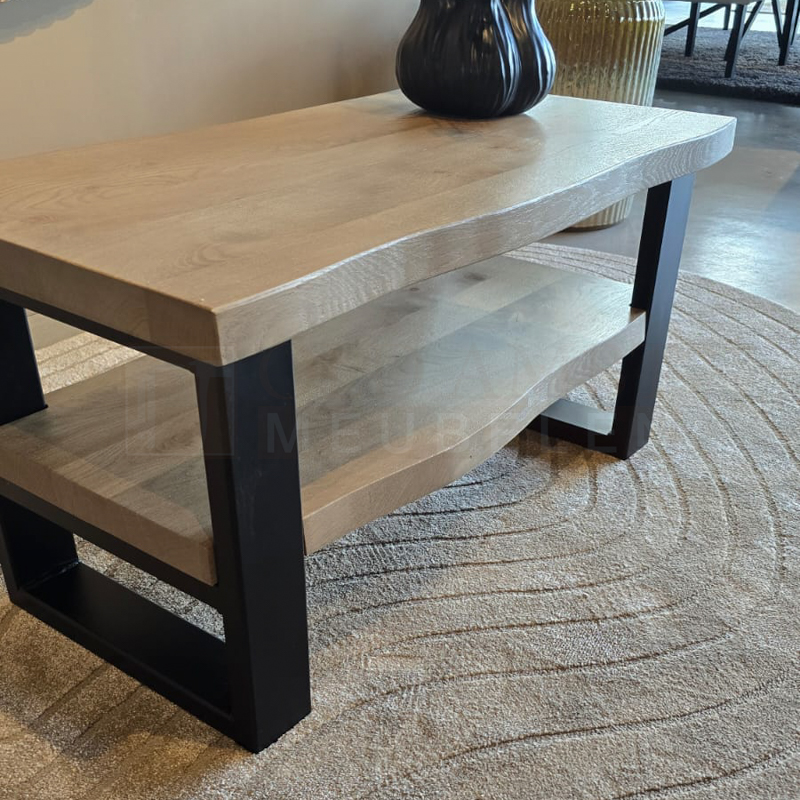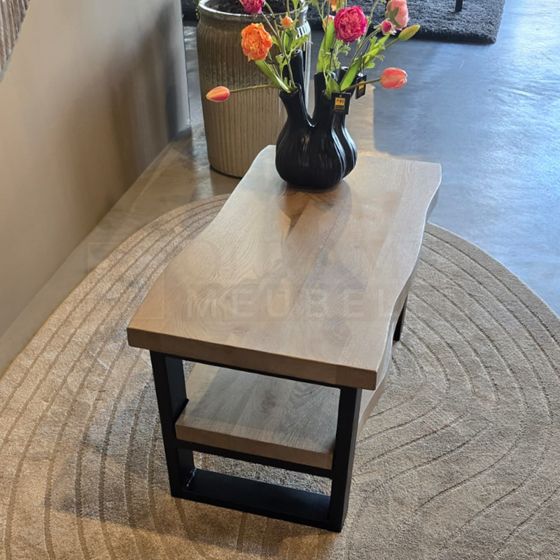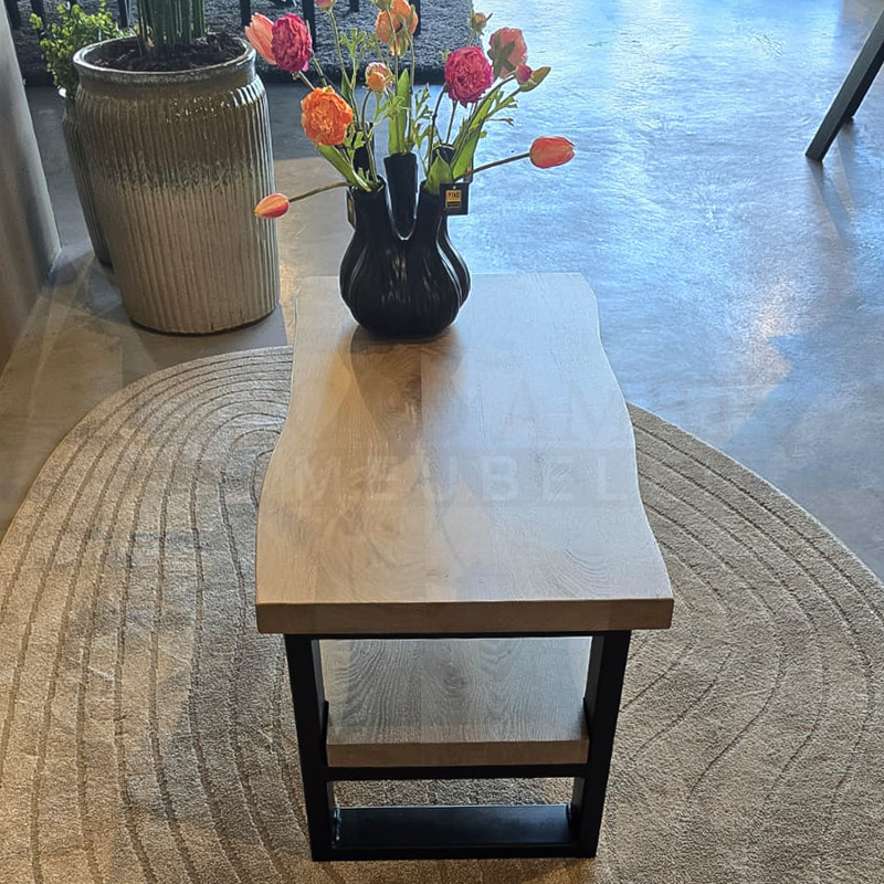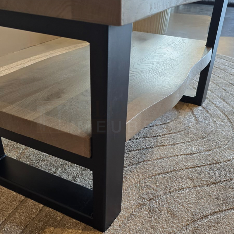De salontafel Fabian is gemaakt van 4 cm massief dik eikenhout en wordt behandeld in een door u gewenste kleur. De tafel op de foto is behandeld met 4220 zand. (dit is een beschermlaag tegen vochtvlekken en kringen). Het frame is gemaakt van een metalen 8 x 3 cm koker en kan gespoten worden in Wit (RAL 9010), Grijsbeige (RAL 1019), Parelgoud (RAL1036), Chocoladebruin (RAL 8017), Olijfgroen (RAL 7002), Parelmoergrijs (RAL 1035), Ombergrijs (RAL 7022) en Zwart (RAL 9005).