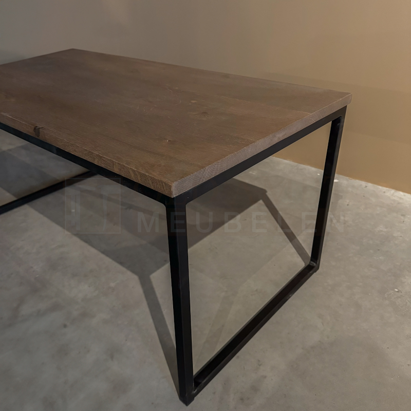 De salontafel Ramona is gemaakt van 2 cm massief dik eikenhout en wordt behandeld in een door u gewenste kleur. De tafel op de foto is behandeld met 3167 English Color. (dit is een beschermlaag tegen vochtvlekken en kringen). Het frame is gemaakt van een metalen 2 x 2 cm koker en kan gespoten worden in Wit (RAL 9010), Grijsbeige (RAL 1019), Parelgoud (RAL1036), Chocoladebruin (RAL 8017), Olijfgroen (RAL 7002), Parelmoergrijs (RAL 1035), Ombergrijs (RAL 7022), Zwart (RAL 9005).