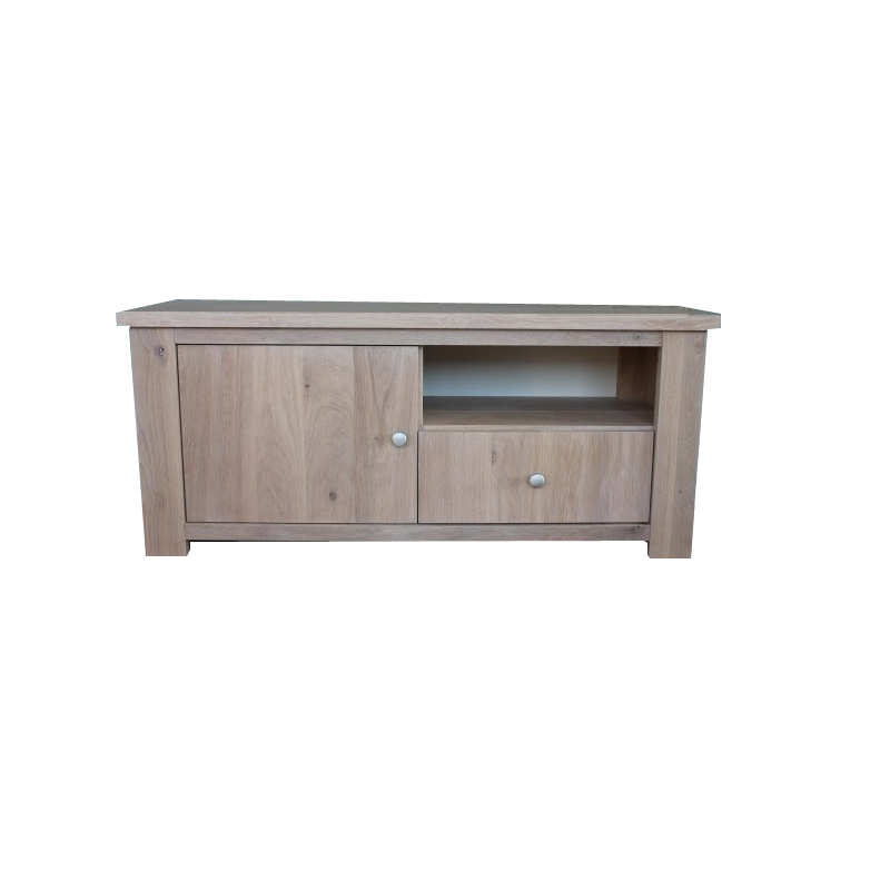 Dit meubel is gemaakt van eiken en afgewerkt in een door u gewenste kleur. Het meubel op de foto is behandeld met een witte meubelolie (3111) en afgelakt met een blanke matte lak. Het meubel heeft 1 lade en 1 deur. De deur en wordt afgehangen met inliggende scharnieren. Het bovenblad is gemaakt van 3cm massief eiken.