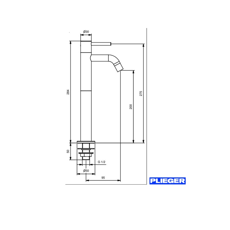 Toilet kraan Napoli is in verschillende uitvoeringen beschikbaar. De voorsprong uitloop is 95mm en de totale opbouwhoogte is 284mm.