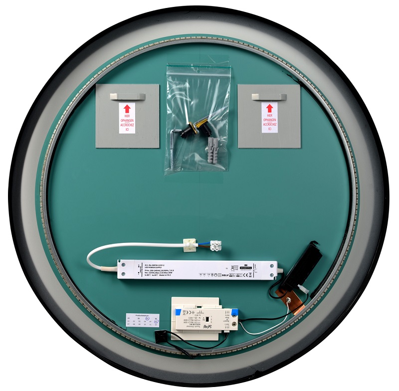 Een echte aanwinst voor onze collectie en voor jouw badkamer is de Nero Round Led. Deze spiegel heeft een zwarte omlijsting met een gezandstraalde rand van vier cm. en geïntegreerde (spatwaterdichte) ledverlichting. Met slimme touch-bediening aan de voorkant van de spiegel zet je het licht aan en uit, en pas je de lichtsterkte en de kleur aan; van koel wit naar warm wit. De Nero Round Led hebben we voor je met een diameter van 60, 80, 100 en 120 cm. Een mooie wandspiegel met zwarte spiegellijst. De spiegel heeft een dikte van 4 mm en is voorzien van bevestigingsmateriaal.